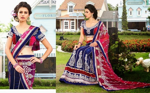 Beautiful Maroon and Navy Blue Net Lehanga Choli embellished with Zari, Velvet and patch patta work.Lehanga is comes with Velvet Blouse and Net Dupatta.