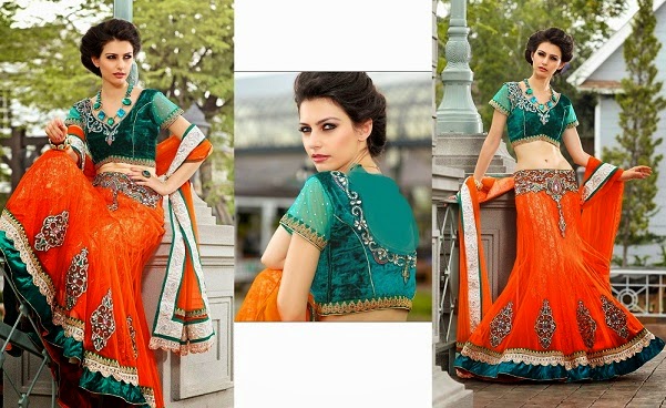 Beautiful Orange Net Lehanga Choli embellished with Velvet,Zari Embroidery and patch patta work.Lehanga is comes with Brasso and Net lehanga inner, Net and Brocade Blouse and Net Dupatta.